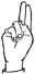 На ћирилици написано ПЕРИША ЧАЈЕТИНАЦ састоји се из 15 слова [?]. Исписано ћириличном једноручном азбуком за глувонеме:
